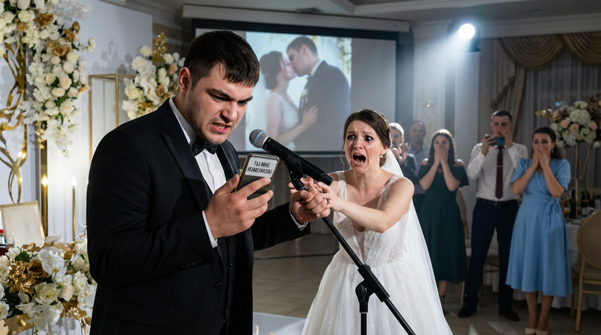 Тишина в банкетном зале стала осязаемой, когда молодожены предвкушали волшебный момент. Но вместо любимых клятв, невеста Кристина и её жених Саша оказались в центре незаконченного спектакля, где правда перевернула их мир с ног на голову.