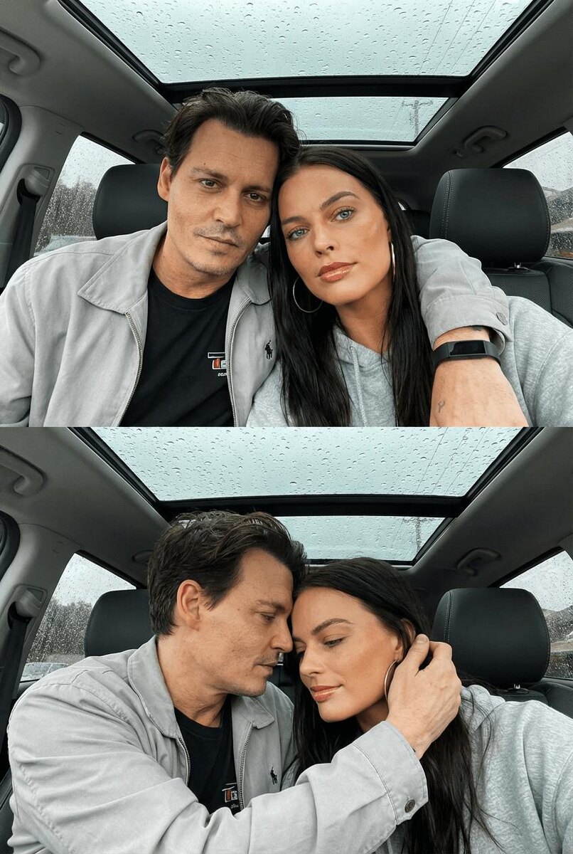 В рамках фотосессии переднастоящая атмосфера тепла и близости, выраженная в эмоциях: рука парня нежно лежит на плече девушки, а их головы наклоняются друг к другу. В одном из кадров он аккуратно поправляет ее волосы, что подчеркивает их близость. Все это происходит на фоне серого, пасмурного неба, а капли дождя, стекающие по стеклу, добавляют нотку меланхолии и романтики. Общая цветовая палитра коллажа сдержанная, с преобладанием серых и темных тонов, создавая уютную и интимную атмосферу. Эти моменты, запечатленные мобильной камерой, становятся символом сильной связи и любви пары, которые умеют находить радость даже в дождливые дни.