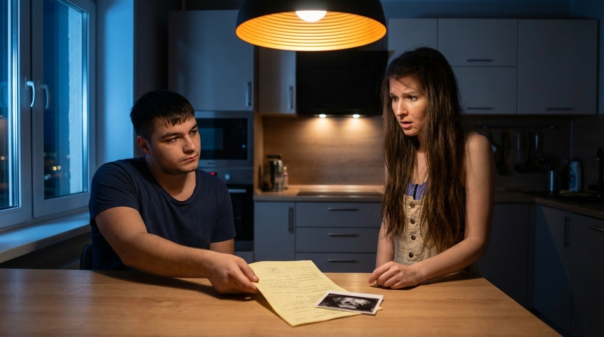 Столкновение архаичной правды с мнимой идеей о новой жизни привело Артема к радикальному решению. Все-таки он взял справку — ту самую, о своем диагнозе, чтобы положить на стол. Тишина заполнила кухню, когда он открыл свои карты, и тайна была разоблачена.